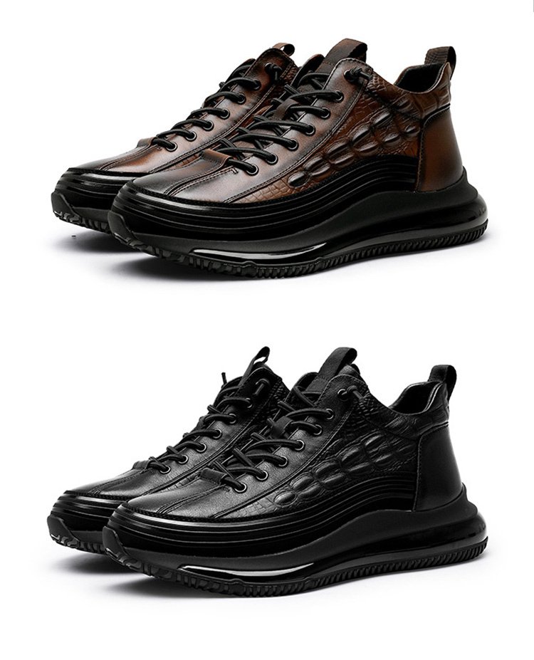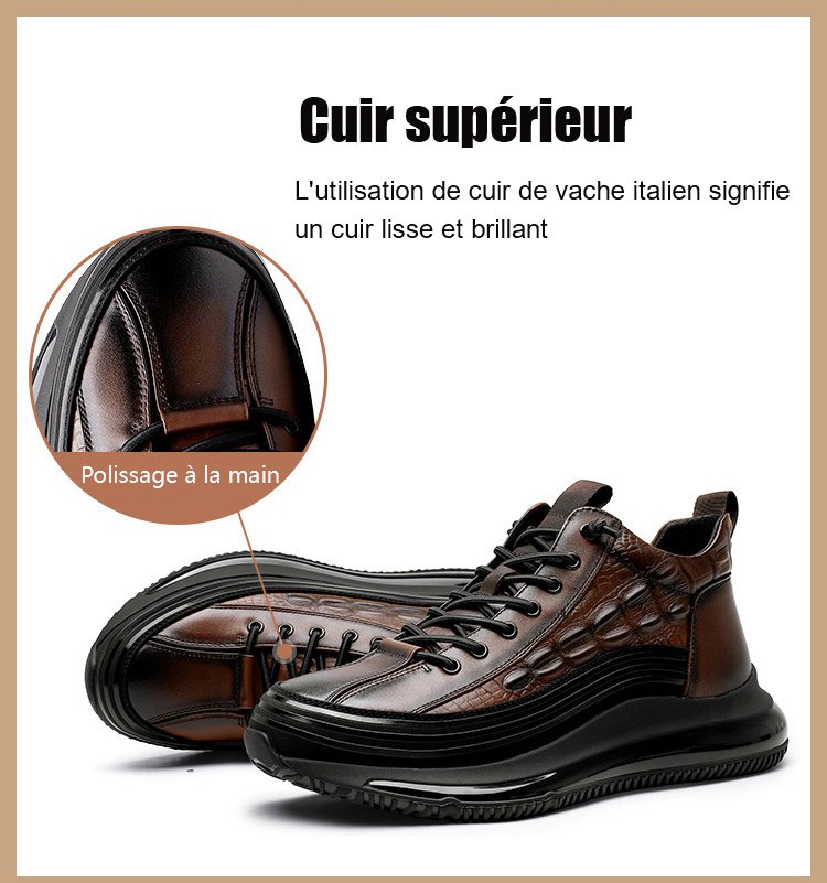 Chaussures de luxe italiennes en crocodile, à semelle épaisse et à coussin d'air, pour hommes.